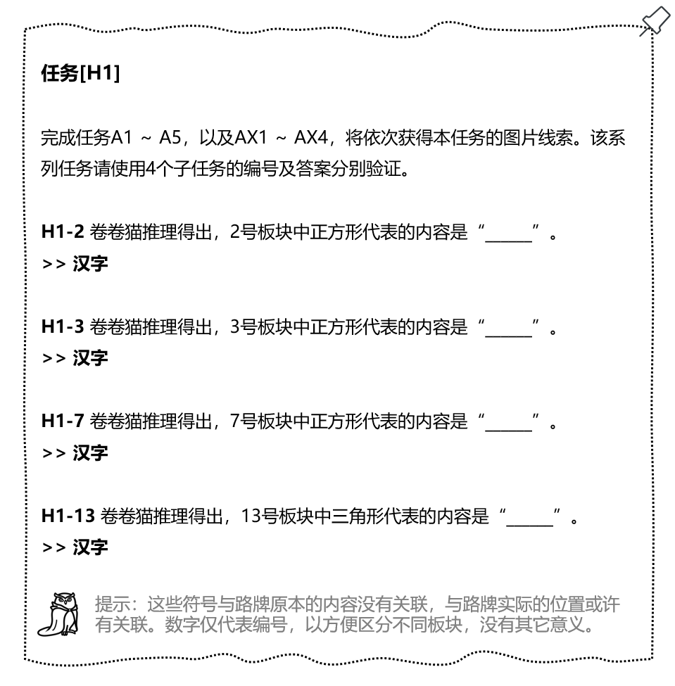 H1,我们通灵出来是地铁线路分块,接下来就花了不超过 6 分钟破译了 20 块。