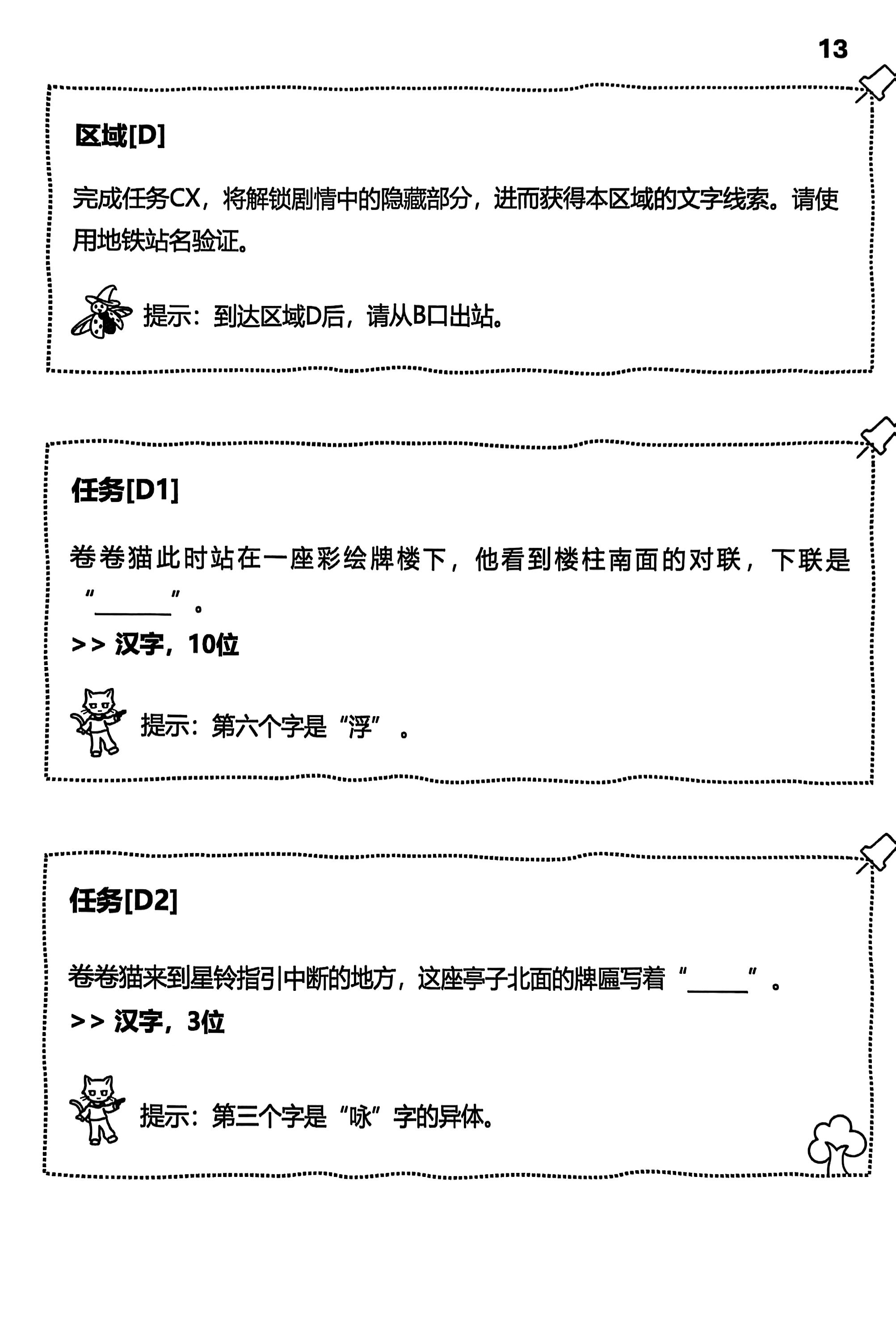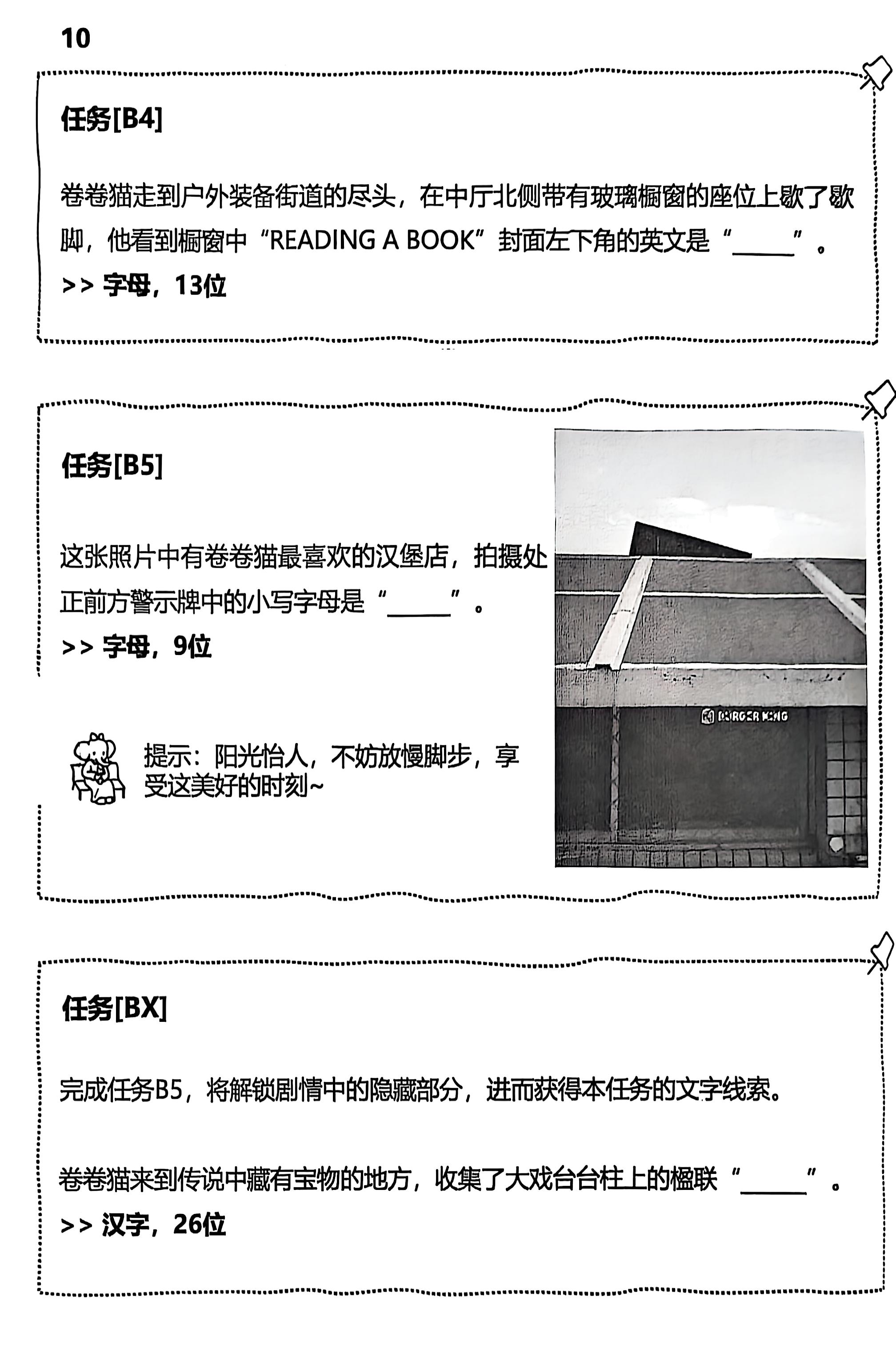 这是一次在北京市区范围内,主打剧情体验的趣味定向探索活动。在游戏中,你将跟随卷卷猫的脚步,探访一个个危机四伏的区域,结识许多动物朋友,逐步了解故事的真相,最终揭开并阻止一场惊天的阴谋,化解猫王国的危机。(没错就是熟悉的味道)